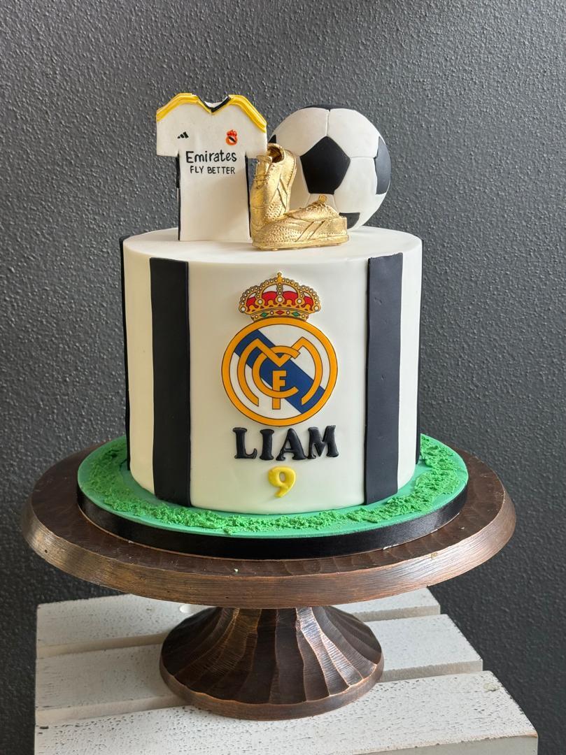 Featuring a gold pair of football boots, and your son's favourite football team jersey and logo. Please key in your Name and Age in the message box.
