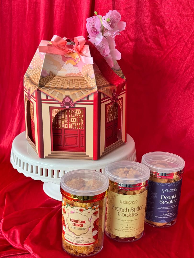 A dainty cookie gift bag, with 3 types of our signature cookie jars. Packaged in a gift box with a red handle, making it easy to carry and gift.