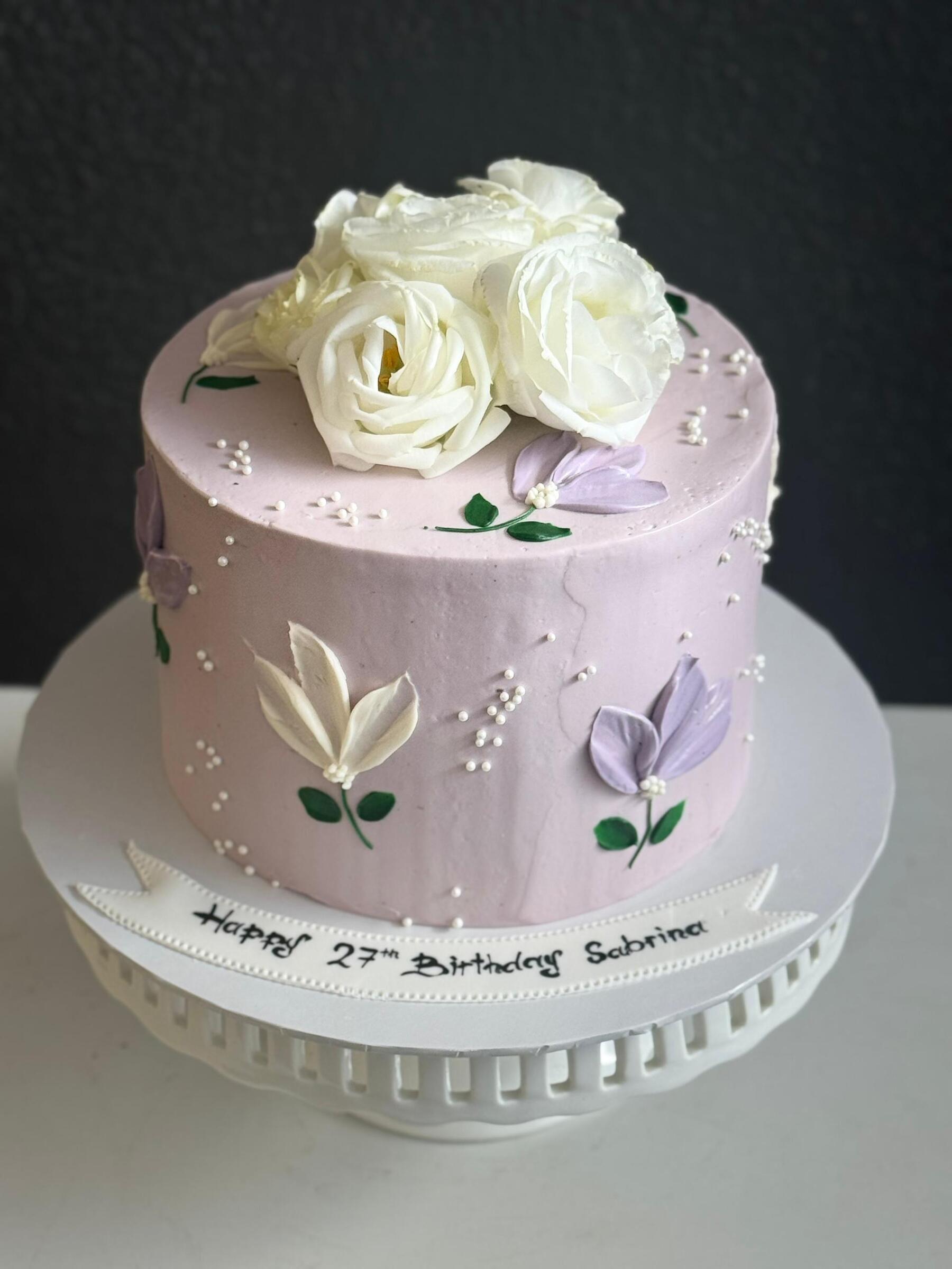 Please take note, the colour of the florals, may differ from time to time. And if we cannot get white florals, the cake colour may change accordingly.